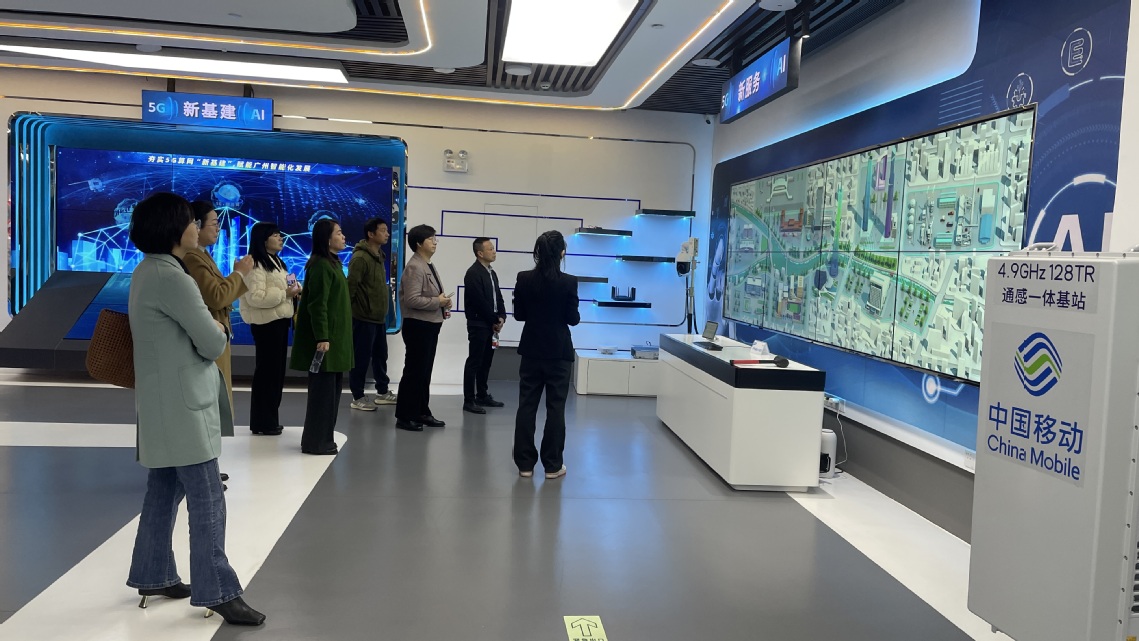 活动伊始,支部党员专题学习了习近平总书记考察广东和出席第十五届全国运动会开幕式重要讲话重要指示精神。随后,在讲解员的引导下,同志们参观了广州移动5G+AI联合创新基地。大家实地观摩了5G网络、人工智能、大数据、物联网等前沿技术在智慧城市、智慧教育、智慧工业等领域的创新应用与解决方案展示。通过亲身体验和互动交流,深刻感受到了科技创新带来的巨大变革力量,对以数字化、智能化手段提升学校资产管理效能、优化实验室管理模式有了更直观的认识和更广阔的思路。