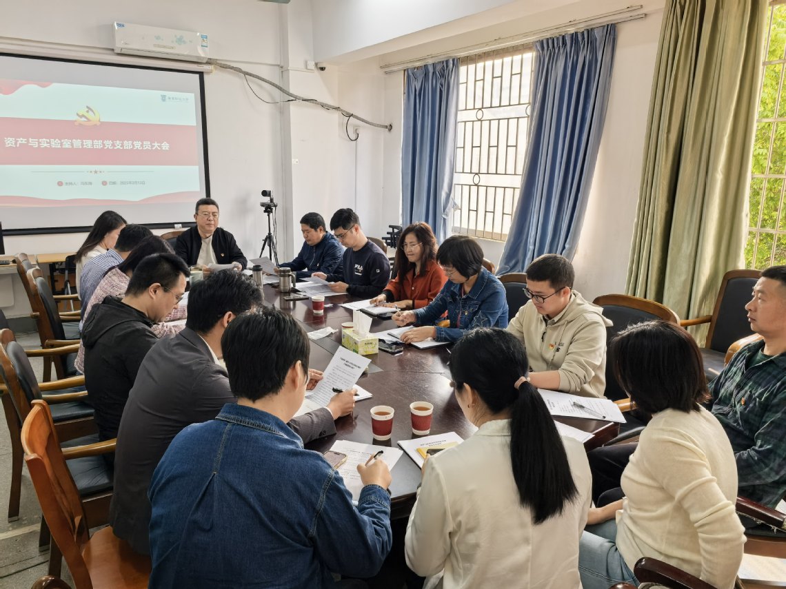 2026年3月13日上午,资产与实验室管理部党支部在明德楼513会议室召开党员大会。会议由支部书记冯东海主持,支部全体党员参加。